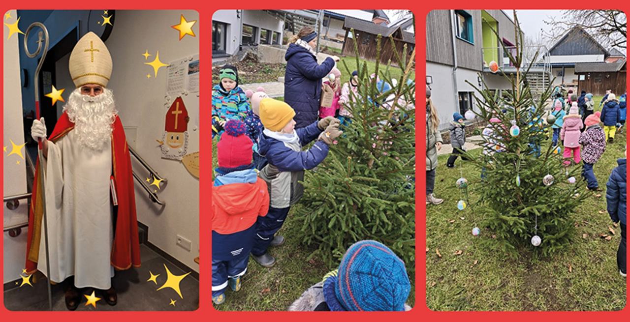 Ein besonderes Highlight war auch der Besuch des Nikolaus. Die Kinder konnten zum Besten geben, was sie über die Legende des heiligen Nikolaus gehört hatten, und lauschten aufmerksam, als er aus seinem goldenen Buch vorlas. Darin wusste er so manches über unsere Kinder zu berichten. Gemeinsam sangen wir Lieder, sprachen über das Gute, das Nikolaus bewirkt hat, und zum Schluss erhielt jedes Kind eine Kleinigkeit.